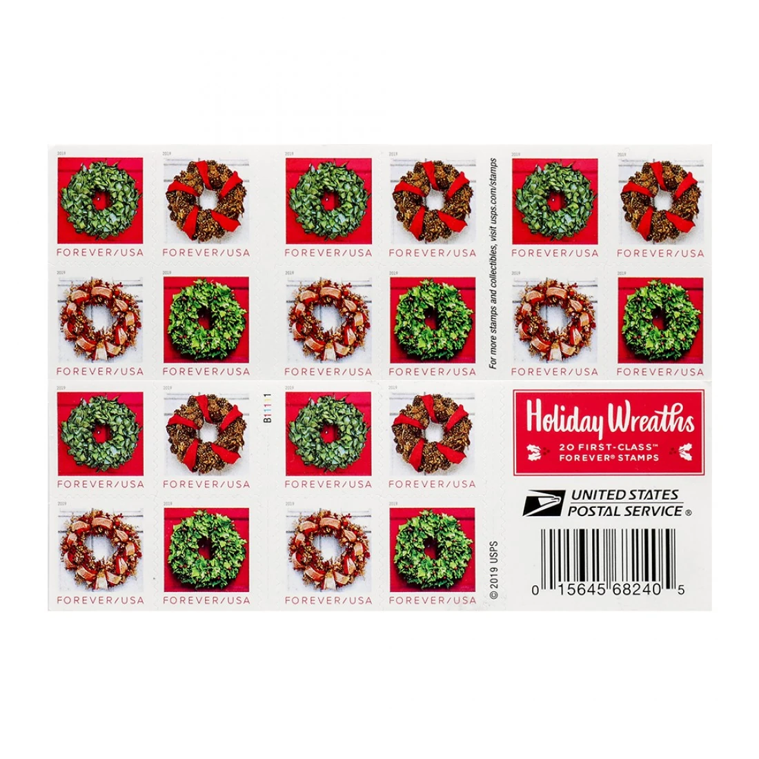 2019 US Holiday Wreaths Forever First-Class Postage Stamps